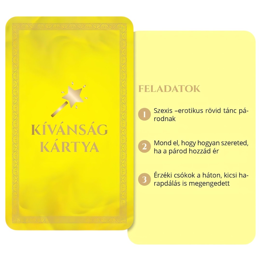 Az Érzékek Játéka egy egyedülálló társasjáték felnőtteknek, amelyet szexuálpszichológus bevonásával fejlesztettek ki. A játék célja, hogy új szintre emelje a pár közötti intimitást és kommunikációt, miközben izgalmas és erotikus feladatokon keresztül fedezik fel egymás vágyait és kívánságait.