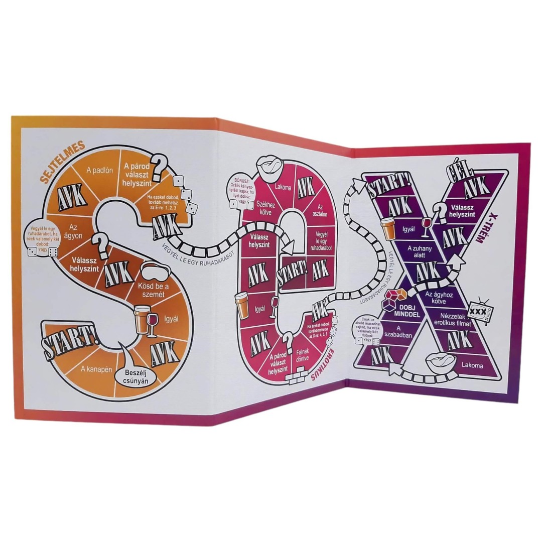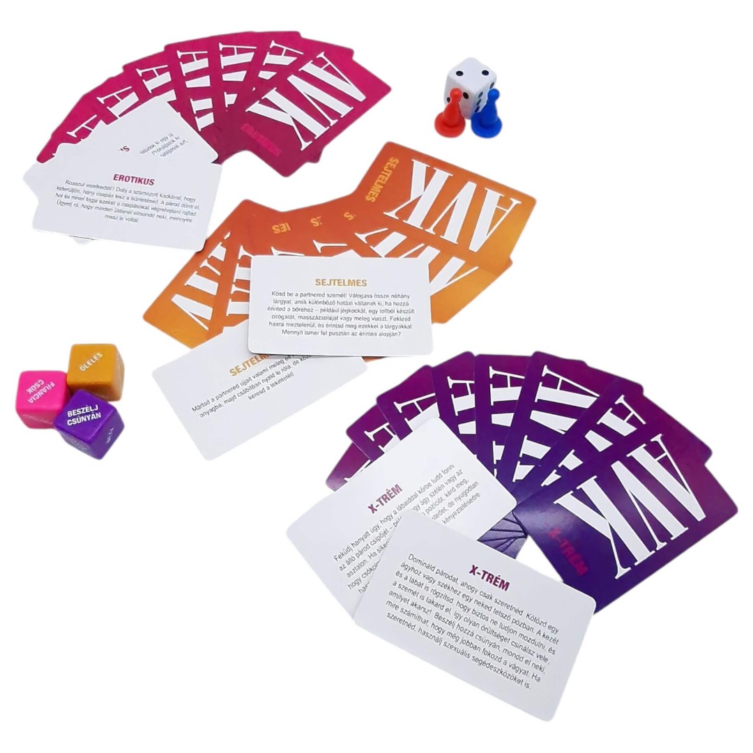 A dobókockák és a kártyák szerencséjén múlik, hogy épp milyen pikáns feladatot kell teljesítenetek. Az AVK mezőkre lépve pedig különösen szexi meglepetések várnak rátok.