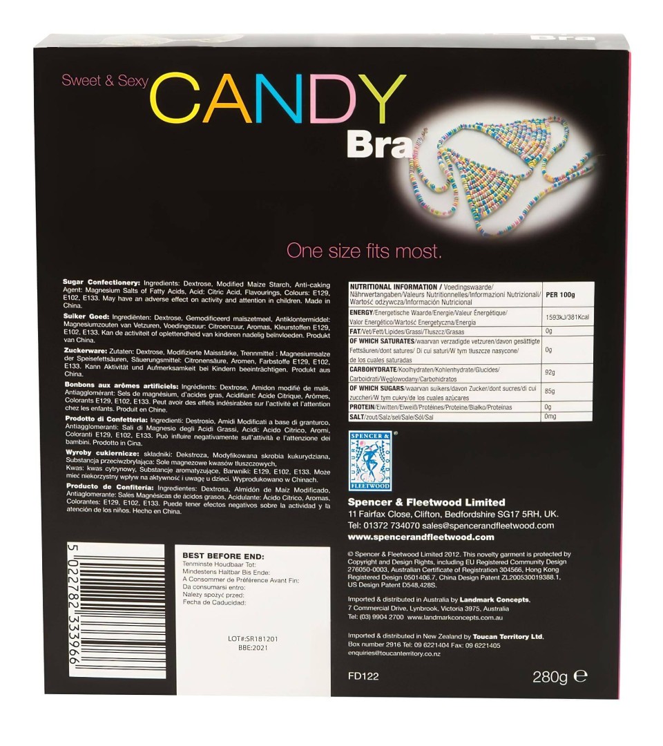 Édes és szexi! Közkedvelt, színes cukorka gyöngyökből fűzőtt érzéki melltartó, rugalmas pántokkal és az intim pillanatok garantáltan édesek lesznek! Fald fel kedvesed! Töltőtömeg: 280gramm.
