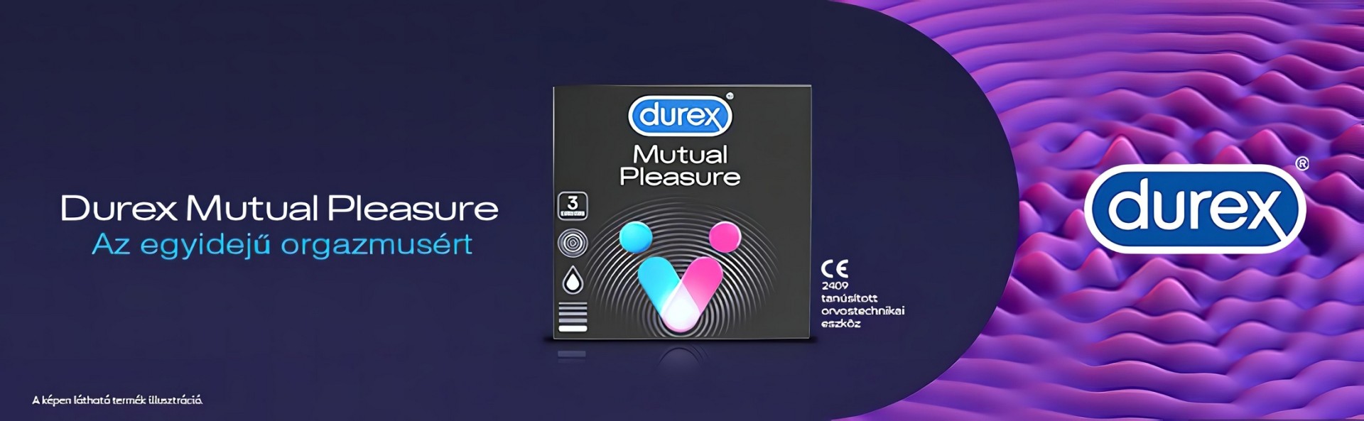 Durex Mutual Pleasure óvszer - A csajokat felpörgeti, a srácokat késlelteti. Azért, hogy a párok egyszerre juthassanak el a csúcsra, a Durex megalkotta legújabb óvszerét: a bordázott és pontszerűen érdesített borítás elősegíti a női orgazmus elérését és növeli annak intenzitását, az óvszerben található síkosító pedig benzokain tartalma révén a férfiaknak segít a kielégülés késleltetésében.