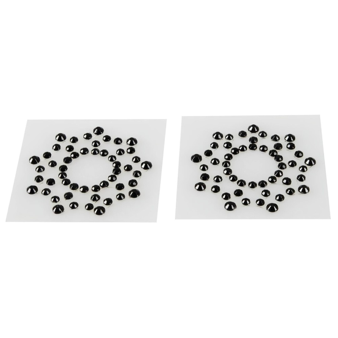 Öntapadós ékszer, mely érzékien öleli körbe a mellbimbókat, csillogó fekete kövekkel, melyek csillagot formáznak.