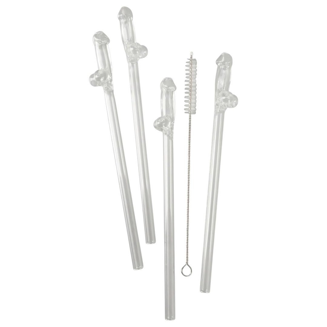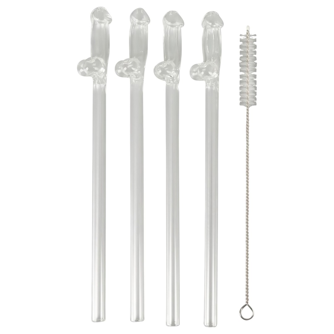 Straw Willy - péniszes üveg szívószál - áttetsző (4db)