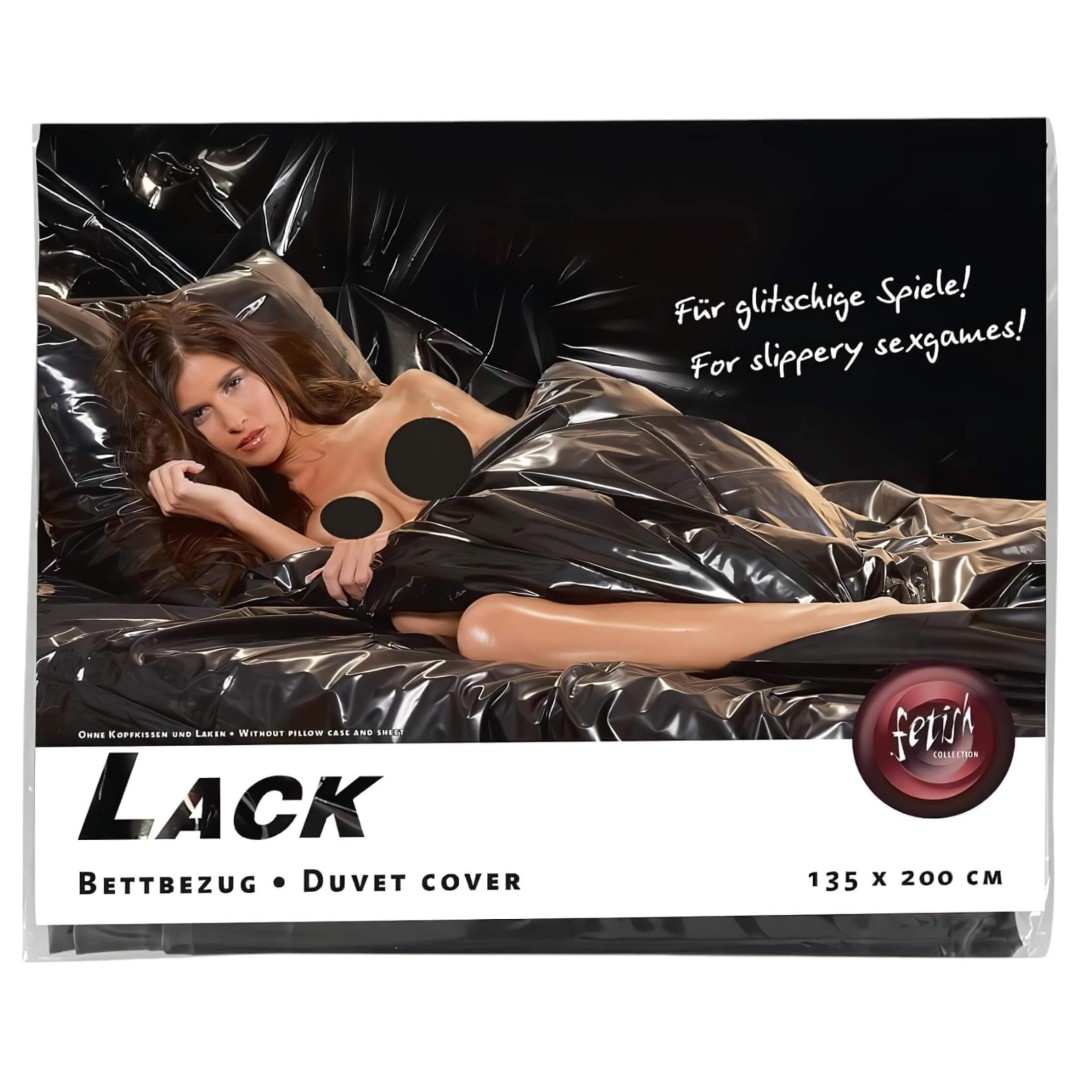 Feküdjön csillogó, lakk ágyneműbe! Fekete színű ágytakaró huzat olyanok számára, akik az ágyban éjszaka sem szeretnének lemondani a tükörsima fétisről, vagy sikamlós erotikára vágynak (masszázs, habcsata). Kb. 135 x 200 cm. Bujtató nyílással. Könnyen tisztítható. 100% poliviniklorid. Takaró és párna nélkül szállítjuk.